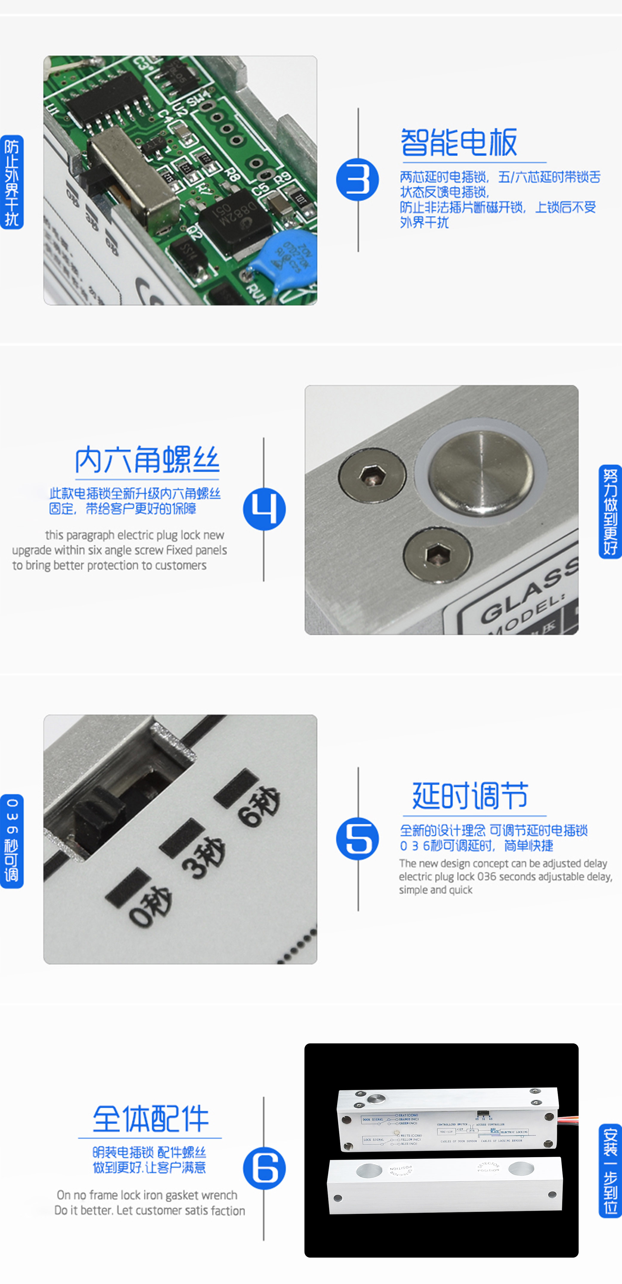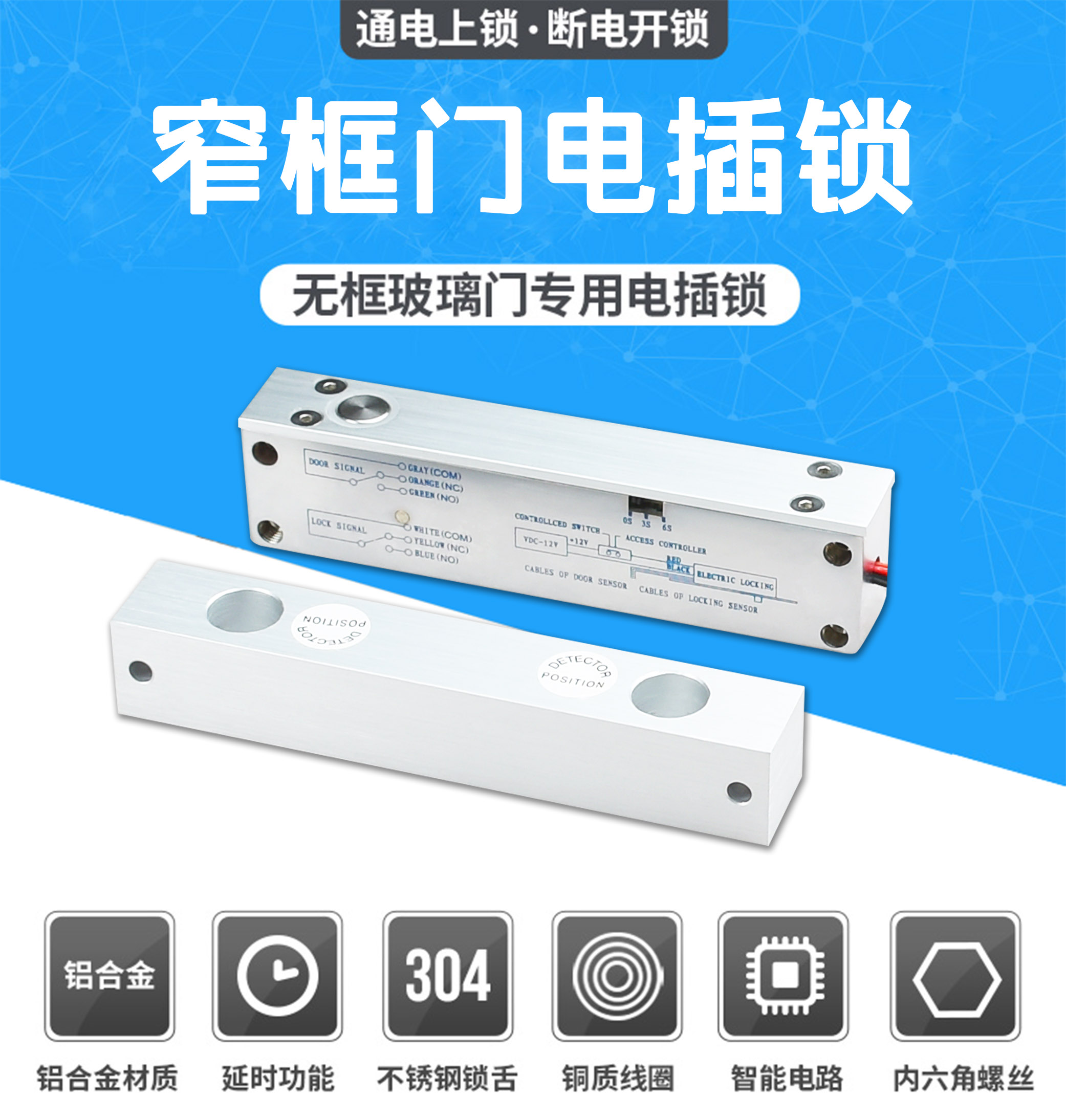 威安士电插锁采用微处理芯片控制电路,减小了电插锁功耗,具有真正意义的超低温功能,50万次的老化测试,防止机械故障,使电插锁更稳定、更环保耐用;电插锁主要针对玻璃门、木门、金属门来设计,是目前一种可控制双向平开门和推拉门的优质电动锁具,是实现门禁控制自动化管理的最佳选择。