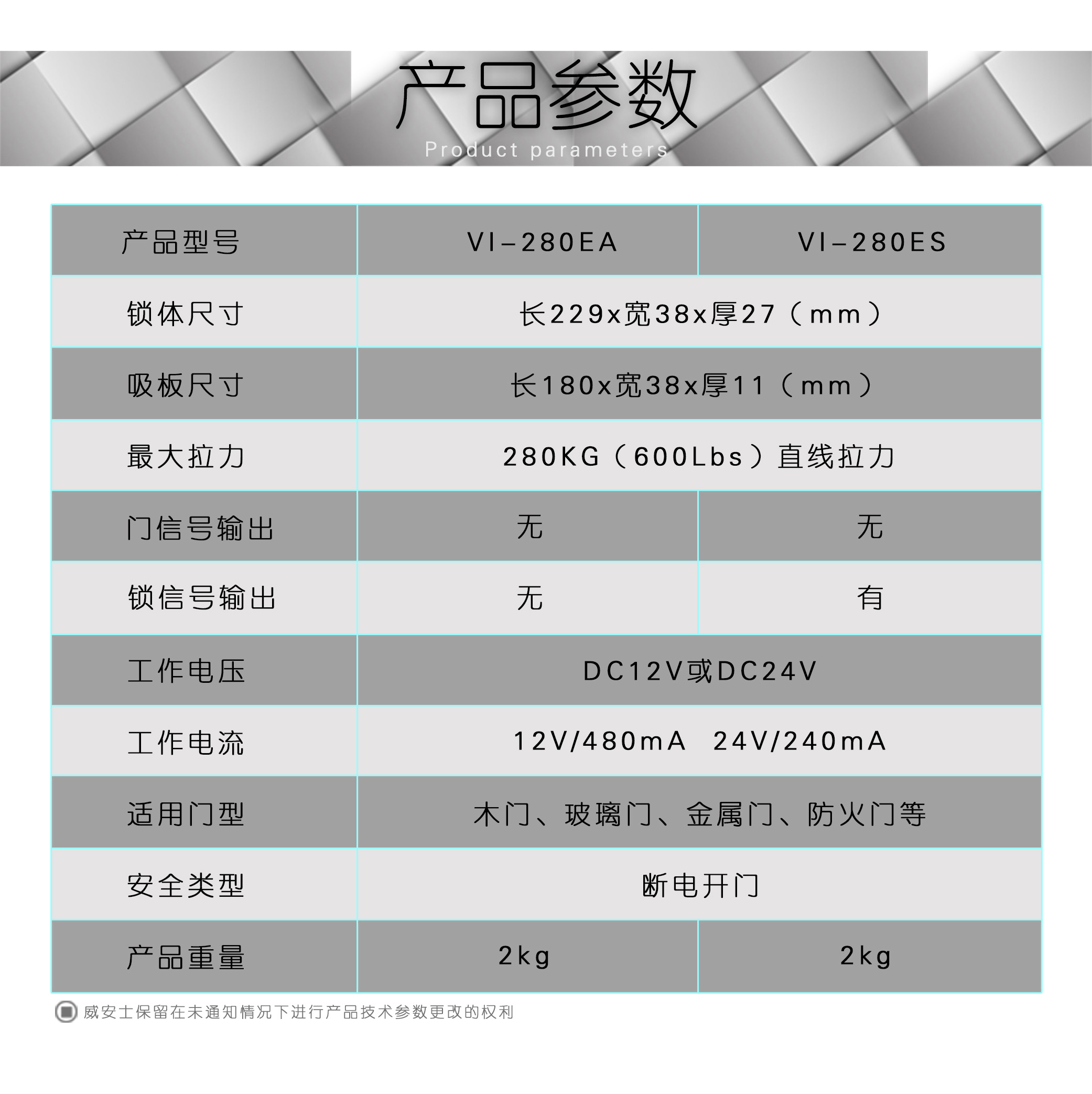 威安士磁力锁采用国际领先的生产和封装工艺,不仅使磁力锁的拉力高于同类产品20%以上,同时磁力锁表面抗氧化能力达到国际领先水平,产品现已销售到了全球八十多个国家和地区,广泛应用于机场、地铁、银行、监狱、智能大厦、智能小区等重要场所,为全球用户提供方便、快捷、智能化的出入口管理锁具,受到了用户的广泛好评和青睐。