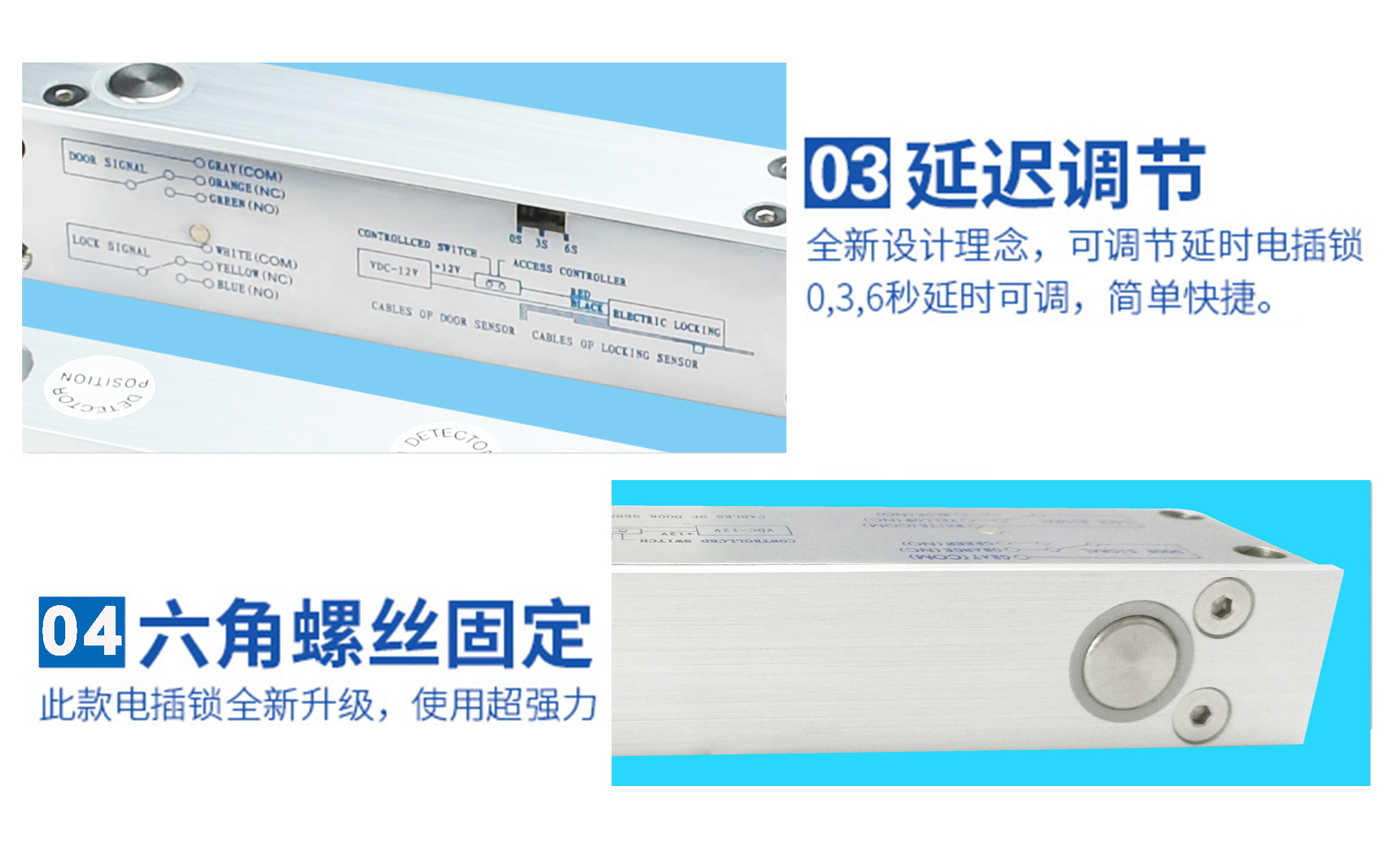 威安士电插锁采用微处理芯片控制电路,减小了电插锁功耗,具有真正意义的超低温功能,50万次的老化测试,防止机械故障,使电插锁更稳定、更环保耐用;电插锁主要针对玻璃门、木门、金属门来设计,是目前一种可控制双向平开门和推拉门的优质电动锁具,是实现门禁控制自动化管理的最佳选择。